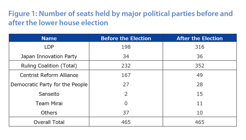 This is the first time in the postwar era that a single party has held more than two-thirds of the House—truly a historic landslide. Within the ruling coalition, Nippon Ishin won 36 seats (+2), bringing the LDP–Ishin total to 352 seats (232 before the election).
